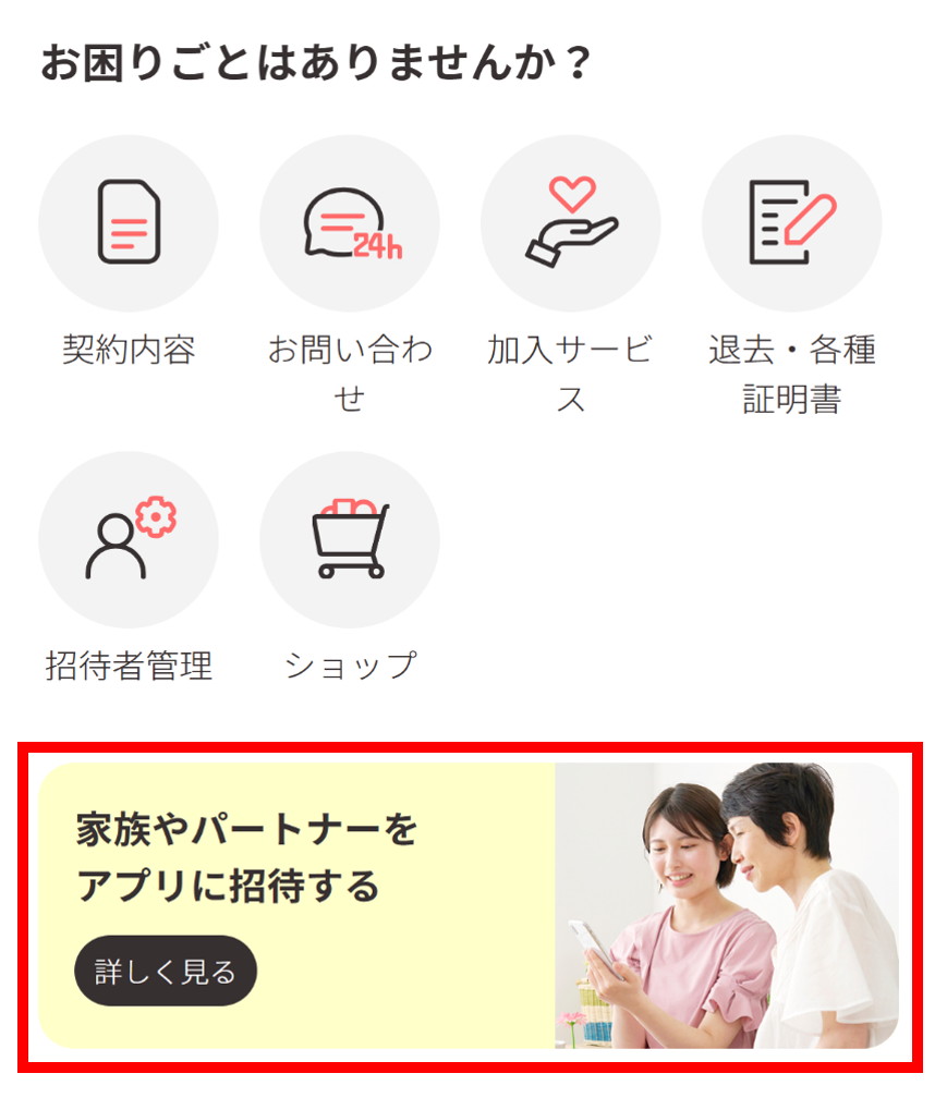 - 「家族やパートナーをアプリに招待する」をタップします。