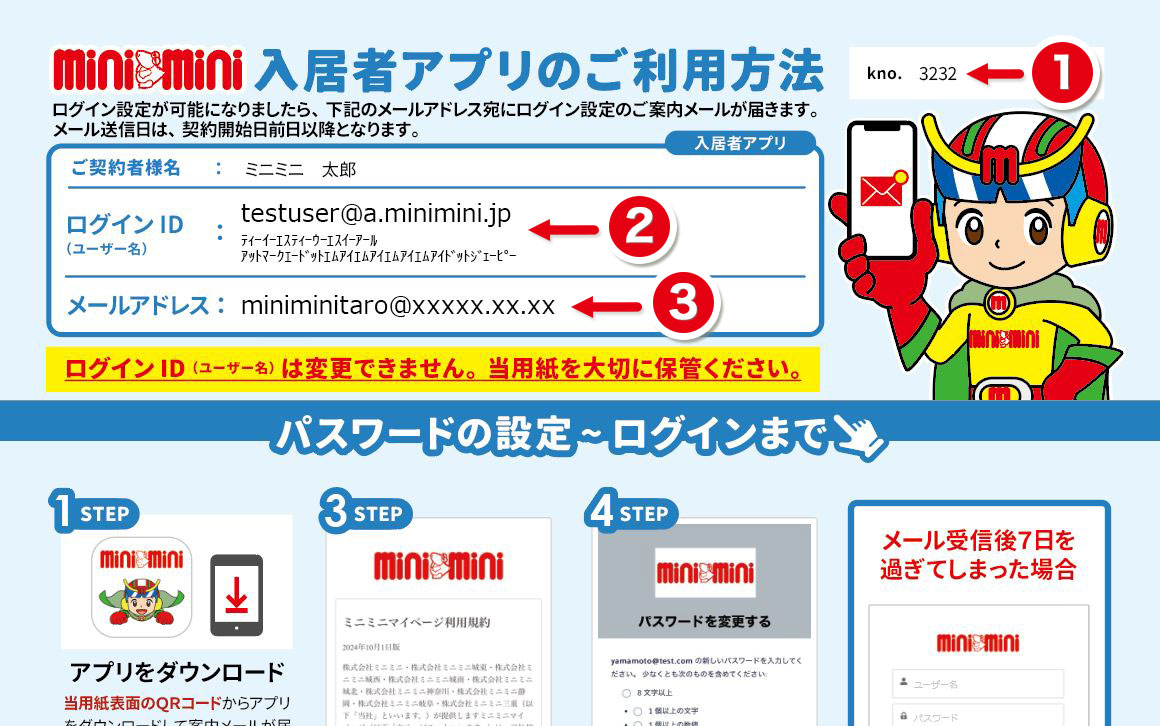 - 契約店舗にてお渡しした、アプリのご案内チラシ裏面にログイン等に必要な情報が記載されております。アプリに関してお問い合わせの際には、ご契約確認のためこちらの情報をお伺いする場合がございます。